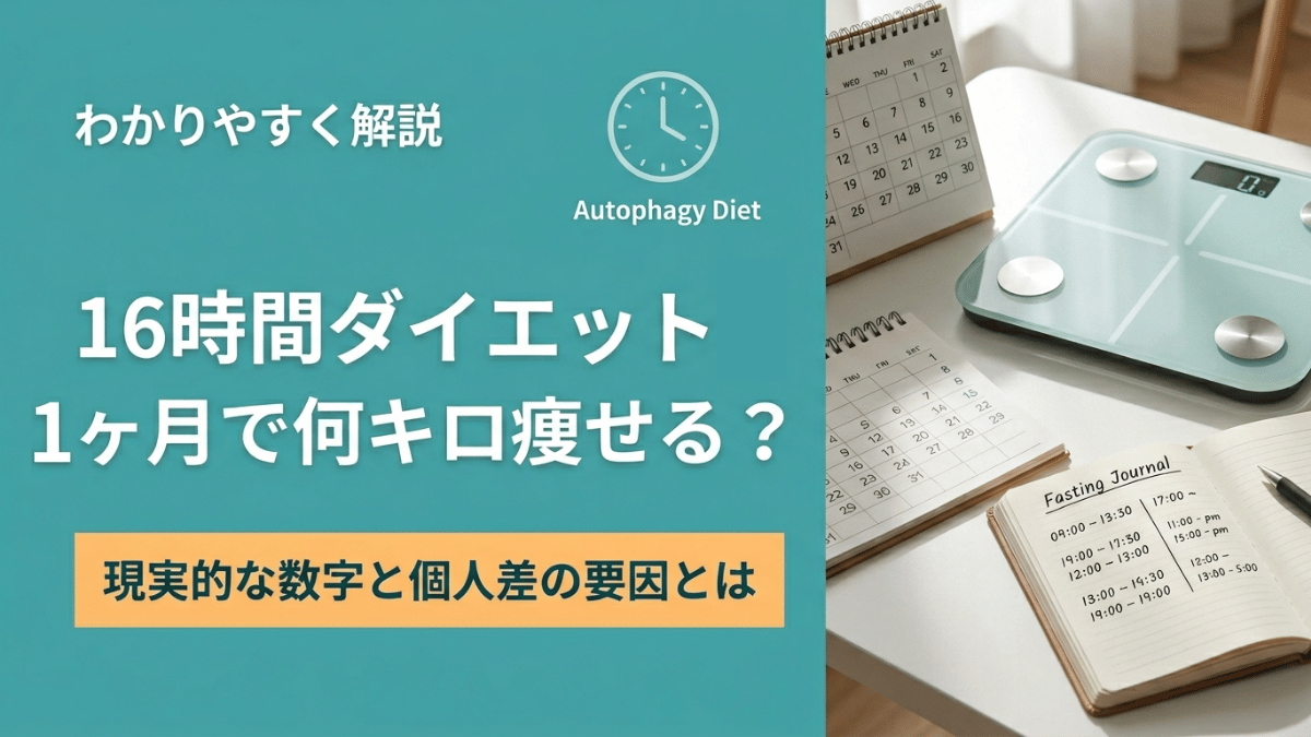 16時間断食(オートファジーダイエット)を1ヶ月続けると何キロ痩せるのか、正直に言うと個人差が非常に大きく一概には言えません。ただ、傾向としてよく聞かれる目安はあります。 「始めてみたけれど数字で見通しを知りたい」「自分の変化は順調なのか確... -