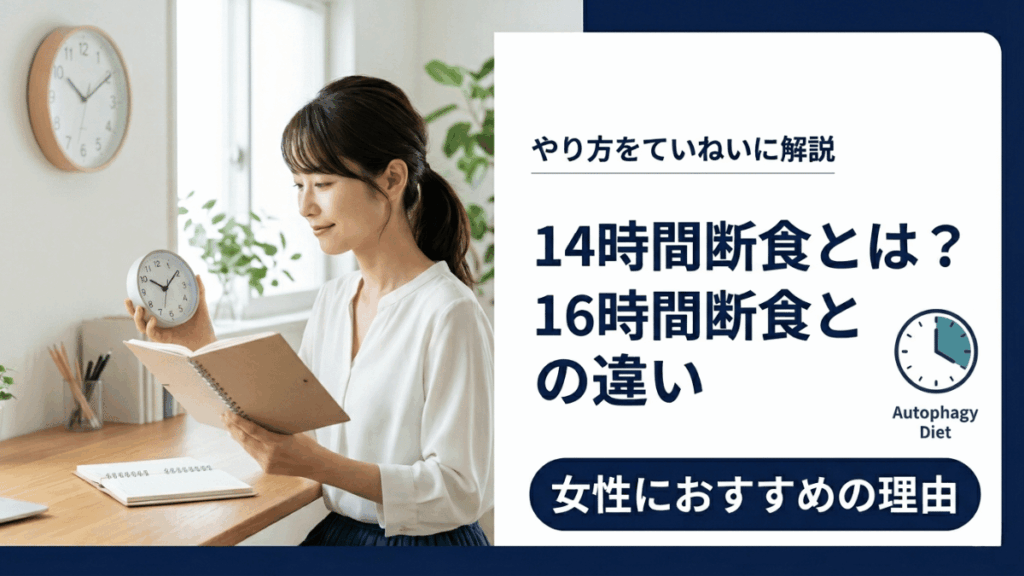 16時間断食(オートファジーダイエット)に挑戦したいけれど、16時間はきつくて続けられない、という方もいるのではないでしょうか。「女性は14時間断食でいい」という話を聞いたことがある方も多いかもしれません。 この記事では、14時間断食の特徴と女性... -